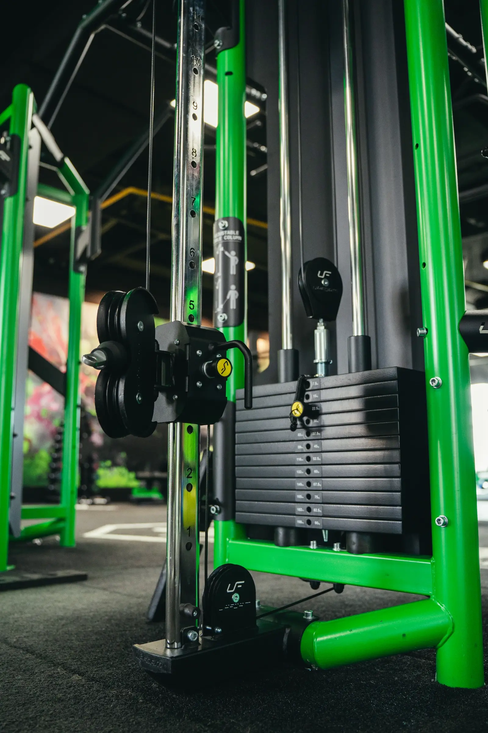 Il pulley a cavo UF-001 è dotato di un sistema di regolazione dell'altezza delle maniglie che consente di eseguire molti più esercizi rispetto a una macchina dal design tradizionale.